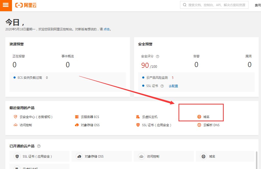 1、阿里云——登陸域名所在的賬號——控制臺  https://www.aliyun.com/