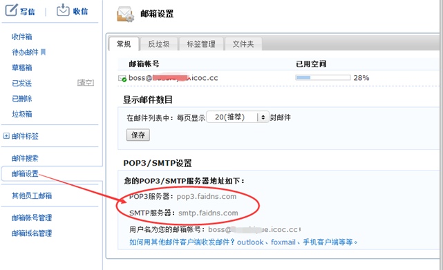 1、登陸企業郵箱——郵箱設置,查查詢您的郵箱POP3服務器和SMTP服務器,記錄下來。