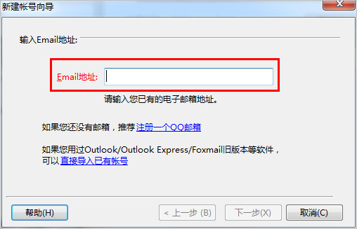 2、啟動Foxmail,在彈出新建賬號中,輸入金的企業郵箱賬號。