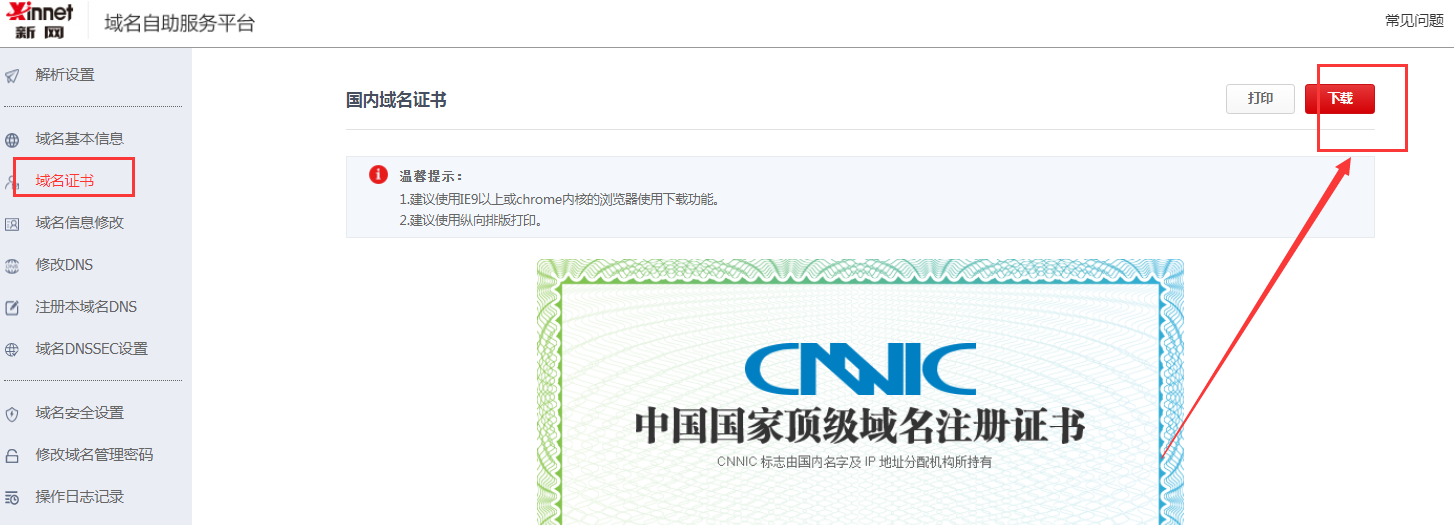 點擊域名證書后,即可看到,下載即可