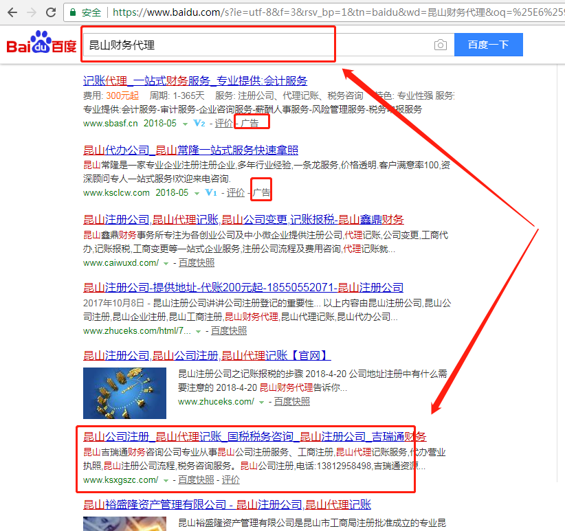 百度SEO優(yōu)化推廣排名第一的關(guān)鍵詞昆山財(cái)務(wù)代理昆山廣告昆山展廳搭建