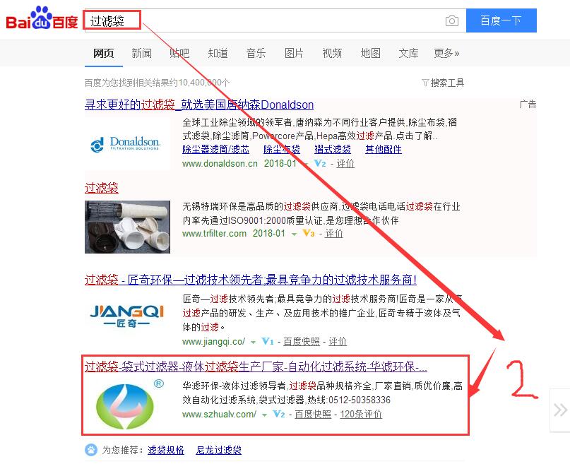 推廣關(guān)鍵詞過濾袋,目前排名第2位。過濾袋推廣周邊相關(guān)詞大概50個詞上百度第一頁,部分常年保持在第一位。華濾環(huán)保官網(wǎng)網(wǎng)址:www.szhualv.com