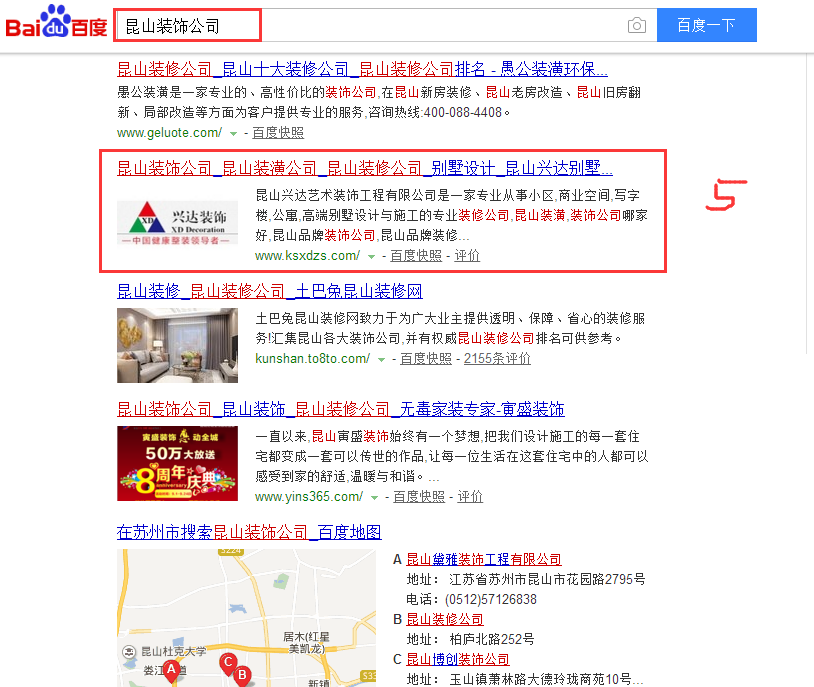 推廣關(guān)鍵詞:昆山裝飾公司,昆山別墅設(shè)計,昆山裝潢公司等。常年排名第一頁前幾位。
