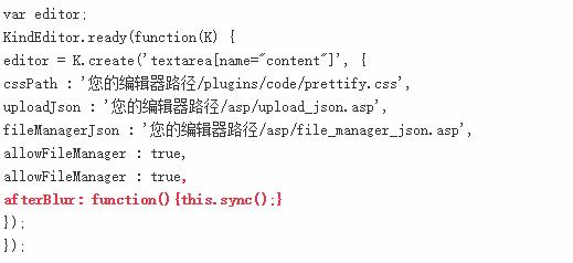默認form模式提交數(shù)據(jù)的時候,在ie下用戶不需要進行任何設(shè)置和調(diào)用sync函數(shù),因為editor已經(jīng)自動調(diào)用,但是在firefox和chrome下,用戶如果不手動調(diào)用sync函數(shù),editor的數(shù)據(jù)將不會自動同步到textarea下,因此造成表象就是ie下只要點擊提交按鈕就可以收到數(shù)據(jù),chrome下無法接受數(shù)據(jù)。