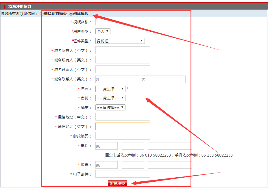 ③ 點擊注冊后,進入注冊信息頁面,信息如實填寫,創建模板,與所有人一致,確認。