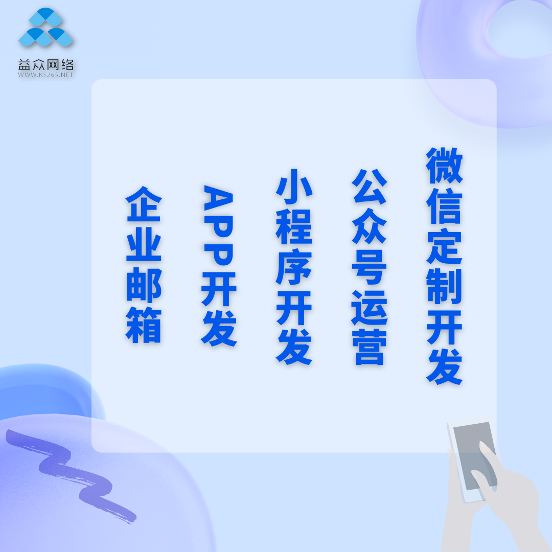 益眾網(wǎng)絡專注互聯(lián)網(wǎng)信息化服務,提供企業(yè)服務類型涵蓋小程序設計開發(fā)、裝修文案、營銷商務、運營維護等多個細項。