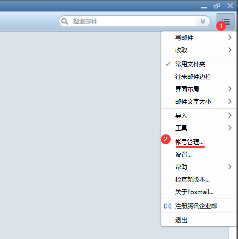 2.1在開始標(biāo)簽(1)下,找到郵箱用戶(2),右擊找到賬戶屬性(3)打開賬號(hào)設(shè)置