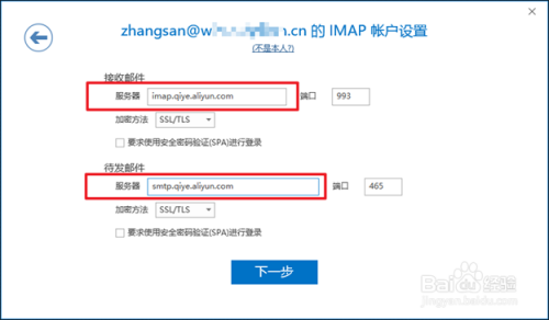 點(diǎn)擊IMAP到下一步,然后填入以下信息: