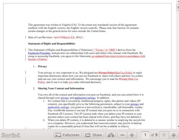 其余的聲明變動專注于字面規定更新以保持權利和責任聲明與Facebook的數據使用政策相一致,包括將“憎恨內容”(hateful content)改為“詆毀偏見”(hatespeech),規定中的社交插件適用于站外共享按鈕以及澄清好友可通過第三方應用分享用戶數據。
