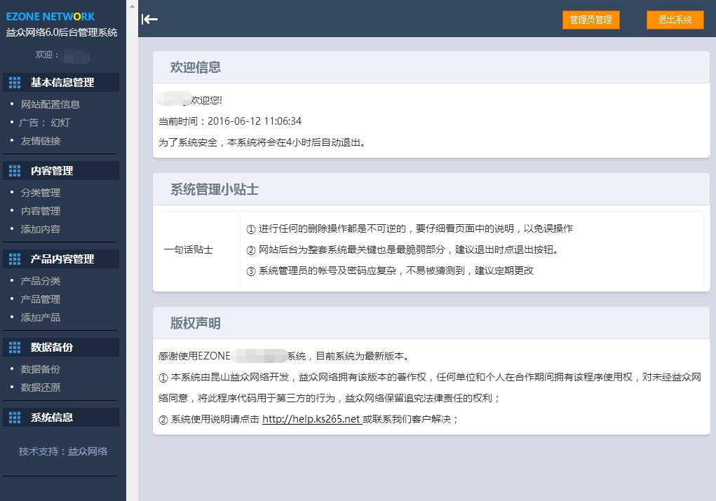 2016年6月,益眾網(wǎng)絡(luò)發(fā)布PHP CMS6.0 BETA 版。新的版本優(yōu)化了系統(tǒng)風(fēng)格,系統(tǒng)功能更加完善。 先來一睹為快。