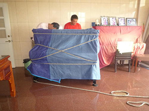 2、鋼琴搬上車后,最好靠在車廂前側(cè),中間還需置放一層棉墊或其他軟包裝材料等,用以防止琴背和車廂產(chǎn)生摩擦。若是路途較遠(yuǎn)的話,鋼琴底板最好墊上兩根木條,可以讓車腳懸空,將鋼琴與車廂的摩擦降到最低。